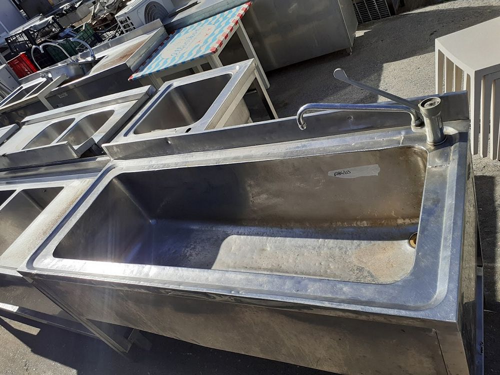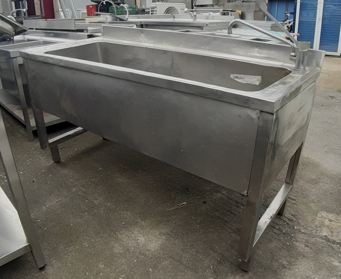 Μεταχειρισμένη επαγγελματική λάντζα σκευών, ανοξείδωτης κατασκευής. Διαθέτει μία μεγάλη γούρνα. Σε καλή κατάσταση. Διαστάσεις: 160x71x93 εκ. (Γούρνα: 140x50x35 εκ.). Τιμή: 450€/τμχ.