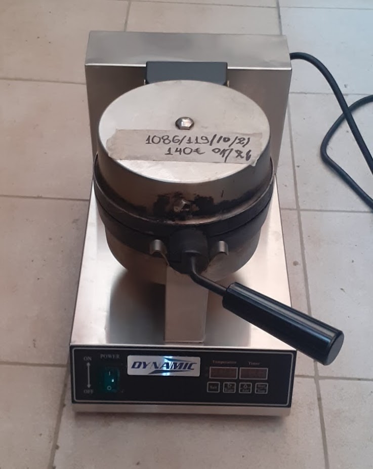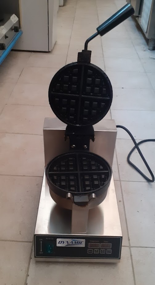 Μεταχειρισμένη επαγγελματική βαφλιέρα ανοξείδωτης κατασκευής, με αντικολλητικές πλάκες. Σε καλή κατάσταση. Διαστάσεις: 27x52x33 εκ. Διάμετρος πλάκας: 19,5 εκ. Τιμή: 140€/τμχ.