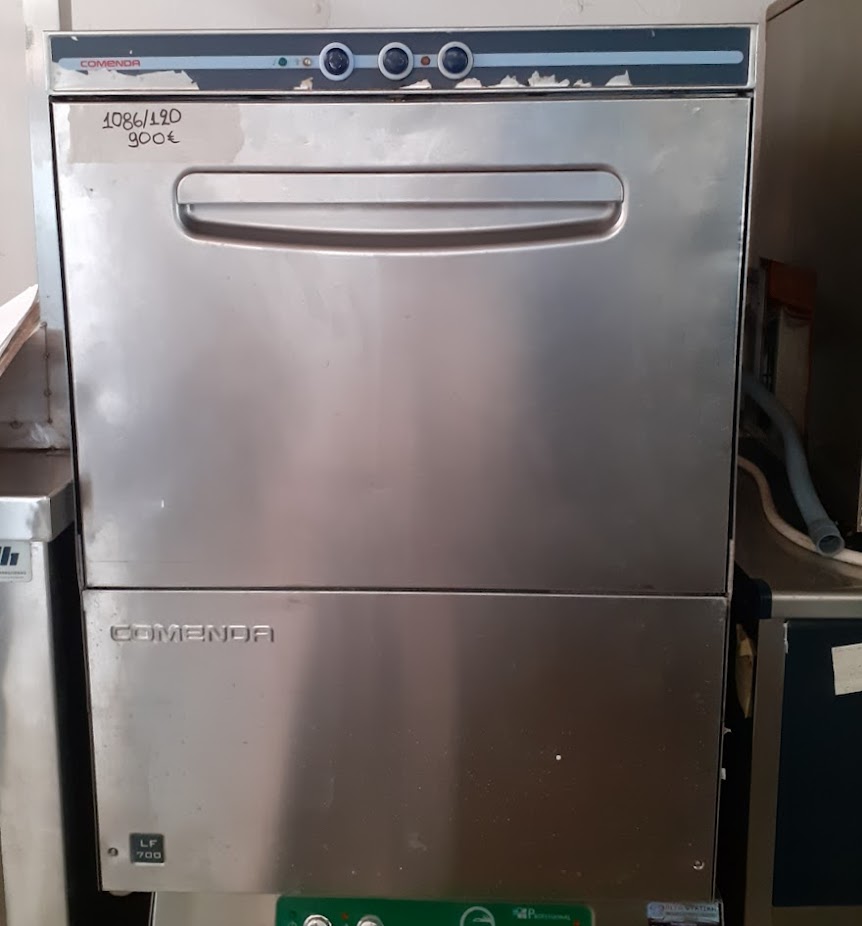 Μεταχειρισμένο επαγγελματικό πλυντήριο πιάτων Comenda, ανοξείδωτης κατασκευής. Κατάλληλο για χώρους εστίασης. Σε καλή κατάσταση. Διαστάσεις: 60x60x82 εκ, ιδανικό για μπασκέτα 50×50εκ. Τιμή: 900€/τμχ.