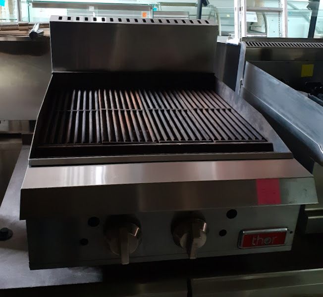 Μεταχειρισμένο γκριλ υγραερίου, διπλό, THOR, με 2 ανάματα. Σε καλή κατάσταση. Διαστάσεις: 61x81x57εκ, πλάκα ψησίματος: 60×52εκ.