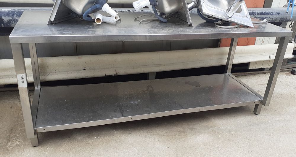 Μεταχειρισμένο τραπέζι εργασίας ανοξείδωτο με ένα ράφι για αποθήκευση. Διαστάσεις: 200x70x85 εκ. Σε καλή κατάσταση.