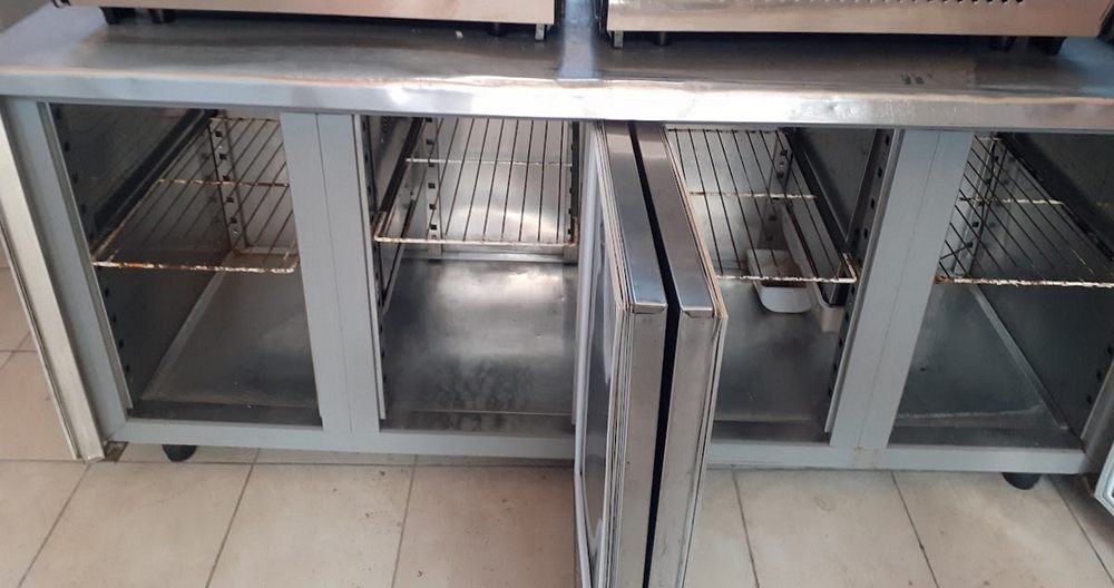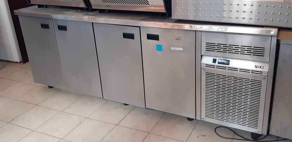 Μεταχειρισμένο ψυγείο πάγκος, ανοξείδωτο, με 4 ανοιγόμενες πόρτες και ενσωματωμένο μοτέρ. Σε καλή κατάσταση. Διαστάσεις: 230x70x87εκ.
