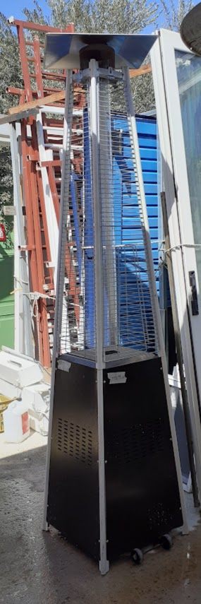 Μεταχειρισμένη θερμάστρα- σόμπα, τύπου “Πυραμίδα”, HT-1496, για χρήση αποκλειστικά σε εξωτερικούς χώρους. Σε καλή κατάσταση. Διάσταση ύψους: 225εκ.