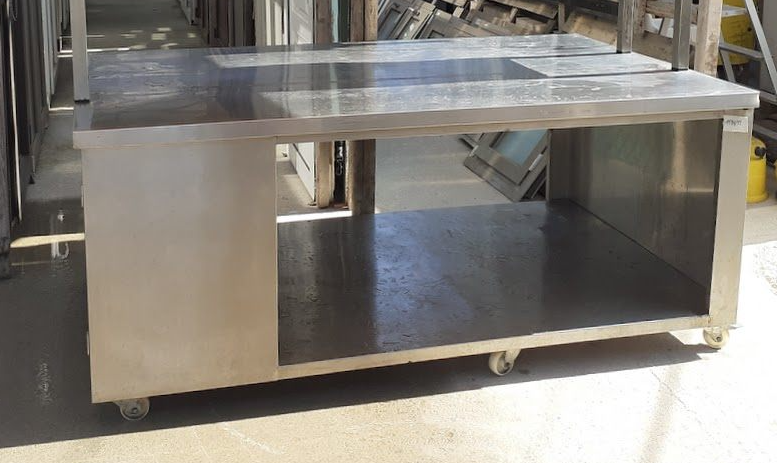 Μεταχειρισμένος, τροχήλατος, ανοξείδωτος πάγκος μέσης. Σε καλή κατάσταση. Διαστάσεις: 200x120x86εκ.
