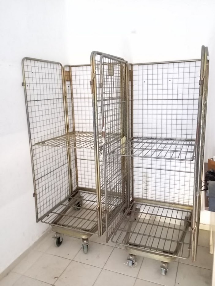 Μεταχειρισμένα τροχήλατα καρότσια μεταφοράς, βαρέως τύπου, με ράφια. Κατάλληλα για επαγγελματική χρήση. Σε καλή κατάσταση.