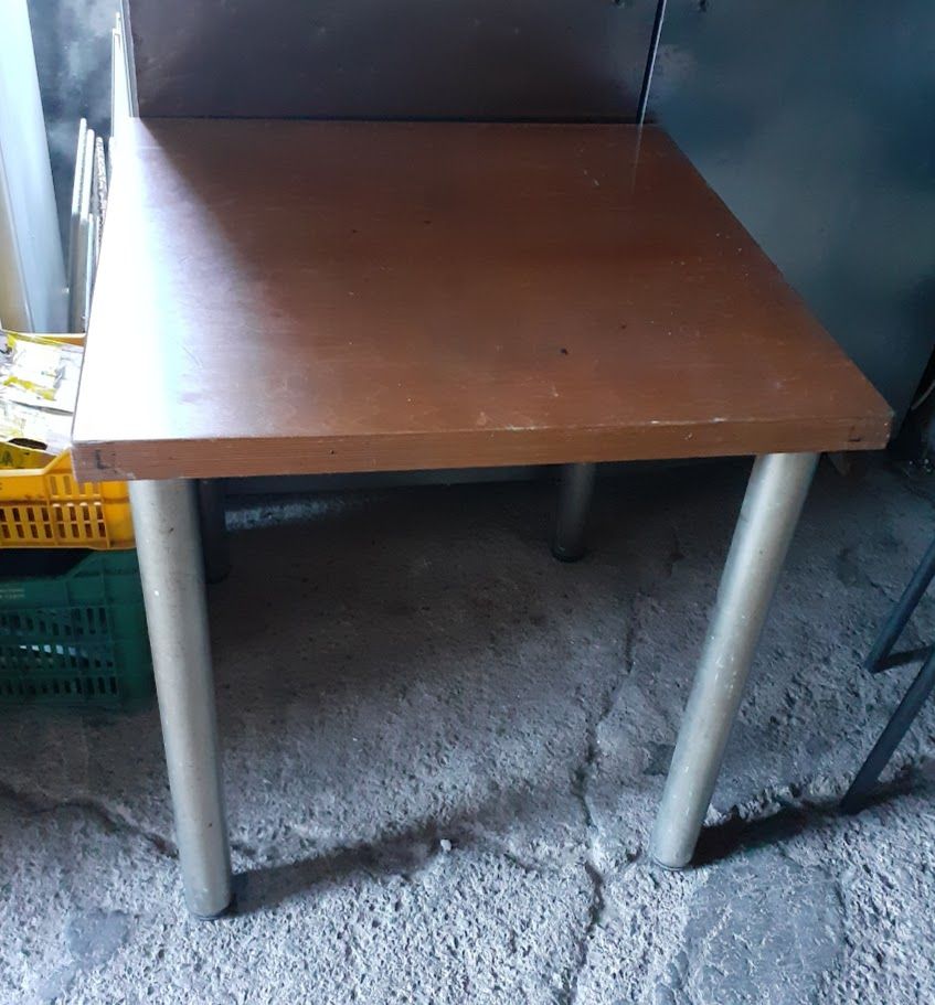 Μεταχειρισμένο τραπέζι με ξύλινο καπάκι και αλουμινίου πόδια. Σε καλή κατάσταση. Διαστάσεις: 75x75x75 εκ. Τιμή: 30€/τμχ.