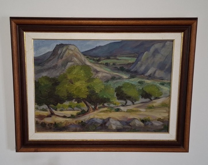 Μεταχειρισμένος πίνακας με ξύλινη κορνίζα και χρυσές λεπτομέρειες. Σε καλή κατάσταση. Διαστάσεις: 65×50εκ.