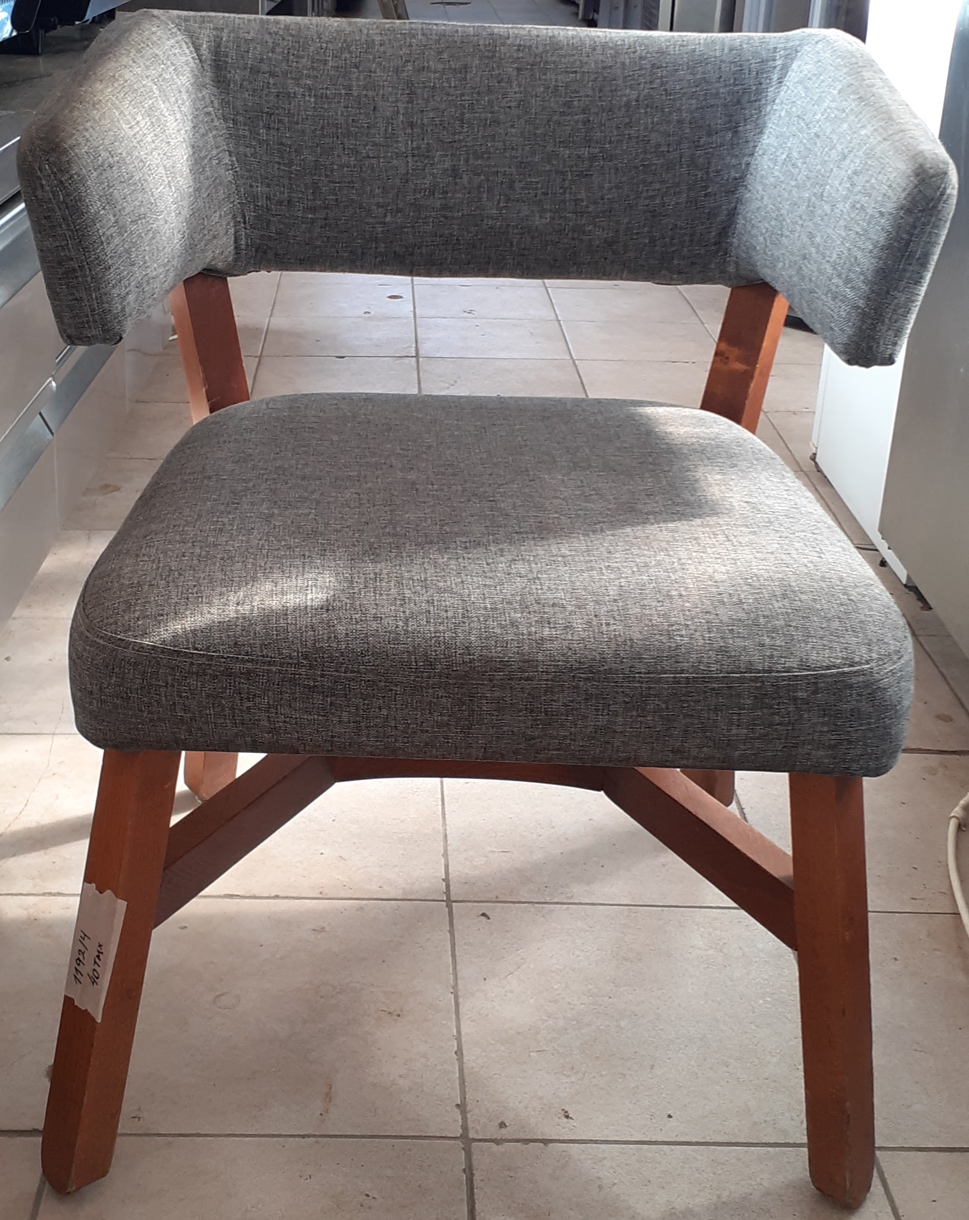 Μεταχειρισμένη υφασμάτινη πολυθρόνα με ξύλινα πόδια σε γκρι χρώμα. Σε άριστη κατάσταση. Τιμή: 40€/τμχ