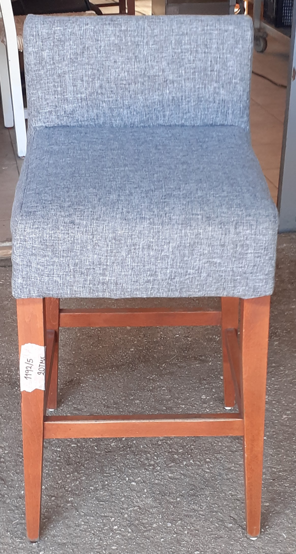 Μεταχειρισμένο υφασμάτινο σκαμπό με πλάτη και ξύλινα πόδια σε γκρι χρώμα. Σε άριστη κατάσταση.Ύψος καθίσματος: 66εκ . Τιμή: 50€/τμχ