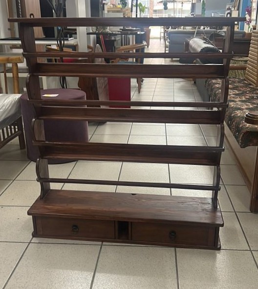 Μεταχειρισμένη, παραδοσιακή ξύλινη πιατοθήκη με 4 ράφια και 2 μικρά συρτάρια, σε πολύ καλή κατάσταση. Διαστάσεις 90x15x95εκ.