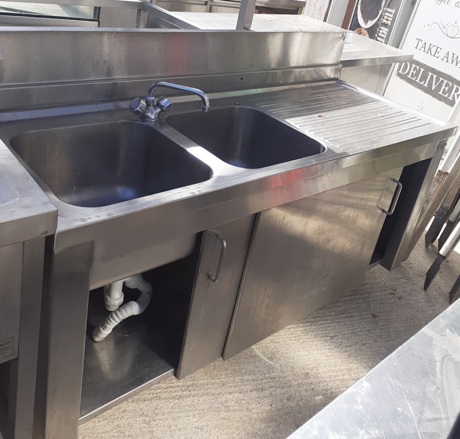 Μεταχειρισμένη διπλή λάντζα ερμάριο, με αποστράγγιση και συρόμενες πόρτες. Διάσταση  160x60x75εκ, διάσταση γούρνας : 40x40x25εκ.