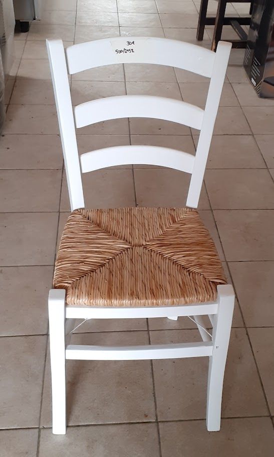 Μεταχειρισμένες ξύλινες καρέκλες, λευκό χρώμα με ψάθινο κάθισμα. Σε καλή κατάσταση. Τιμή: 30€/τμχ.