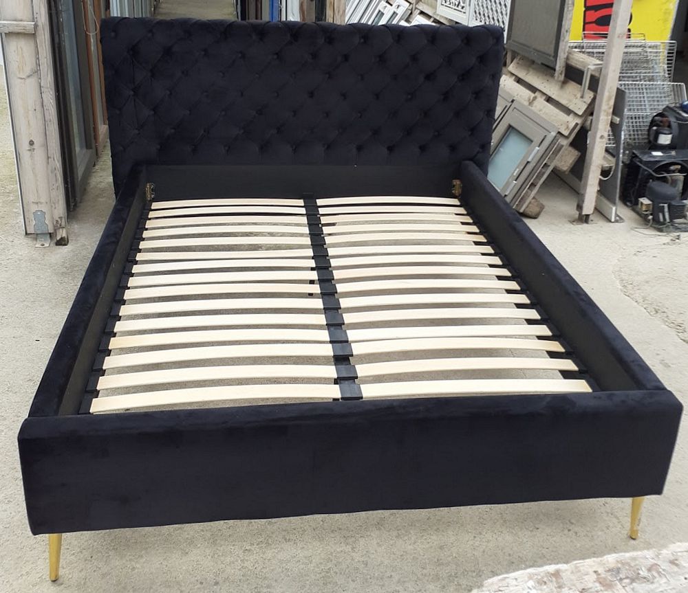Μεταχειρισμένο κρεβάτι βελούδινο σε μαύρο χρώμα. Διαστάσεις με πλάτη:190x220x119 εκ. ιδανικό για στρώμα 160×200 εκ. Τιμή: 150€