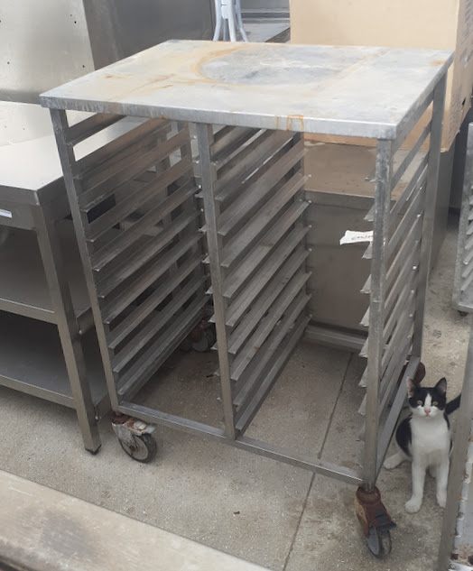 Μεταχειρισμένο καρότσι μεταφοράς για λαμαρίνες, 20 θέσεων. Διαστάσεις καροτσιού: 77x57x107εκ. Διαστάσεις λαμαρίνας: 53×64εκ. Σε καλή κατάσταση.