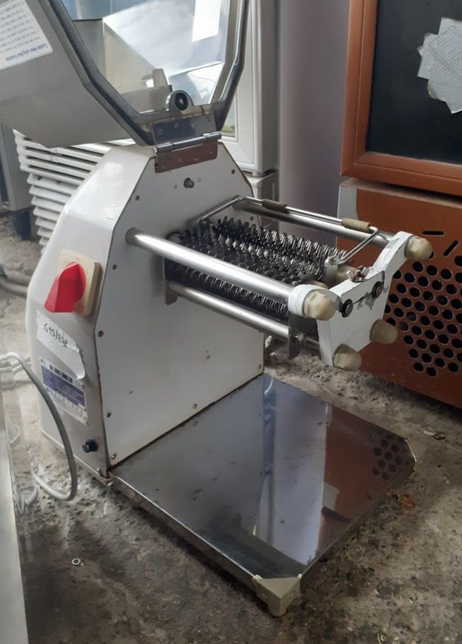 Μεταχειρισμένη σνιτσελομηχανή FM-1002-C. Διαστάσεις: 33.5x53x42.5 εκ.