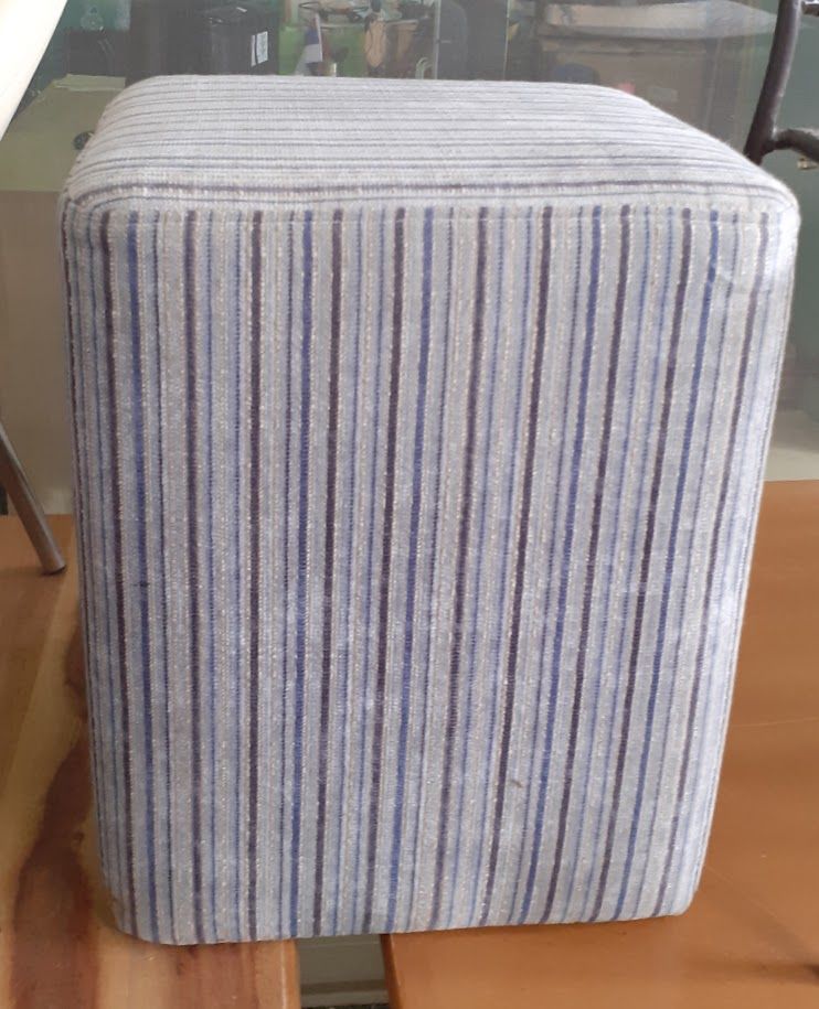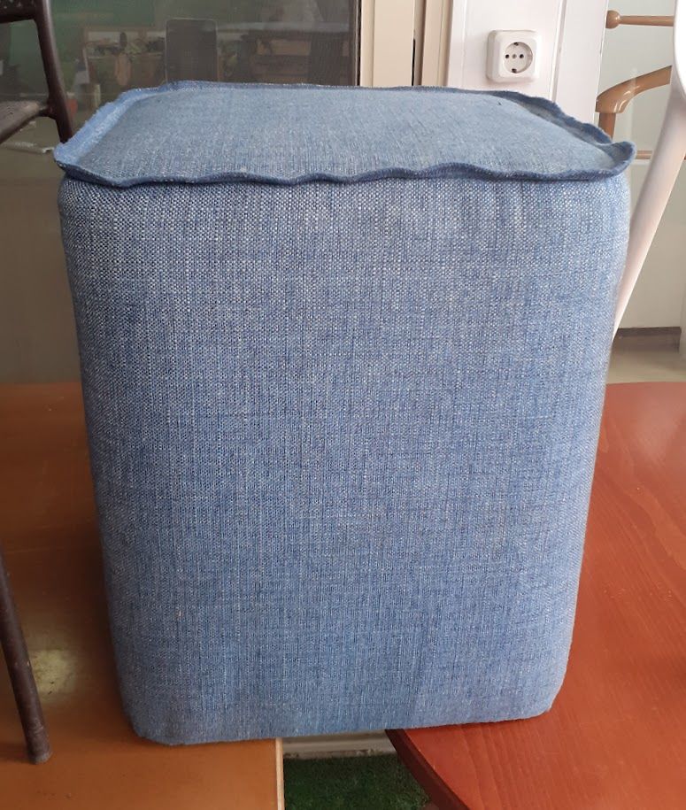 Μεταχειρισμένο υφασμάτινο σκαμπό χαμηλό. Σε καλή κατάσταση. Υψος σκαμπό: 46εκ. Τιμή: 15€