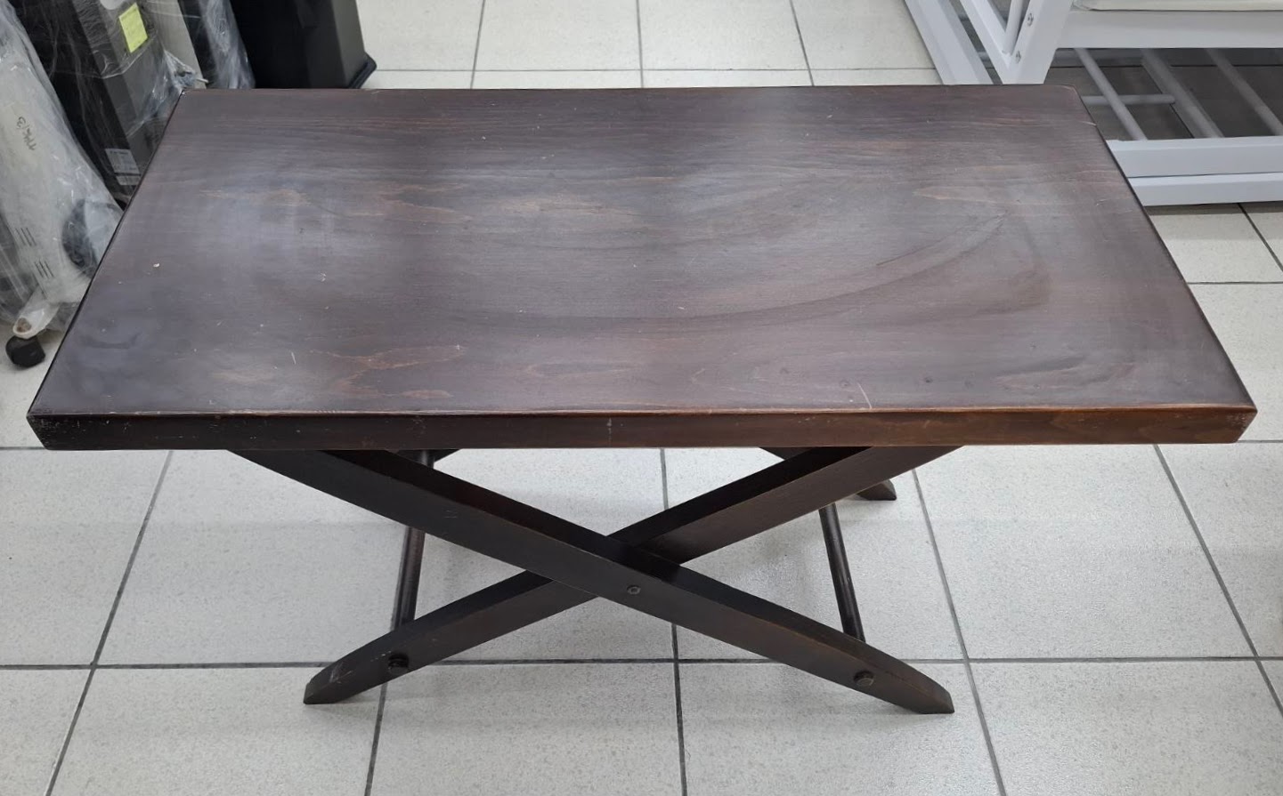 Μεταχειρισμένο, ξύλινο βοηθητικό τραπεζάκι, σκούρο καφέ χρώμα. Σε καλή κατάσταση. Διαστάσεις: 82x42x54 εκ. Τιμή: 20€/τμχ.