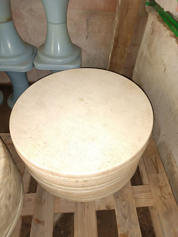 Μεταχειρισμένα στρογγυλά καπάκια τραπεζιών. Σε άριστη κατάσταση. Διαστάσεις: Φάρδος: 60εκ Τιμή: 20€/τμχ