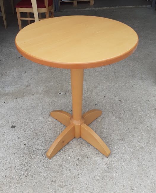 Μεταχειρισμένο τραπέζι, εσωτερικού χώρου, με ξύλινο καπάκι και βάση. Σε καλή κατάσταση. Διάμετρος: 60εκ, Υψος: 74εκ. Τιμή: 40€/τμχ.