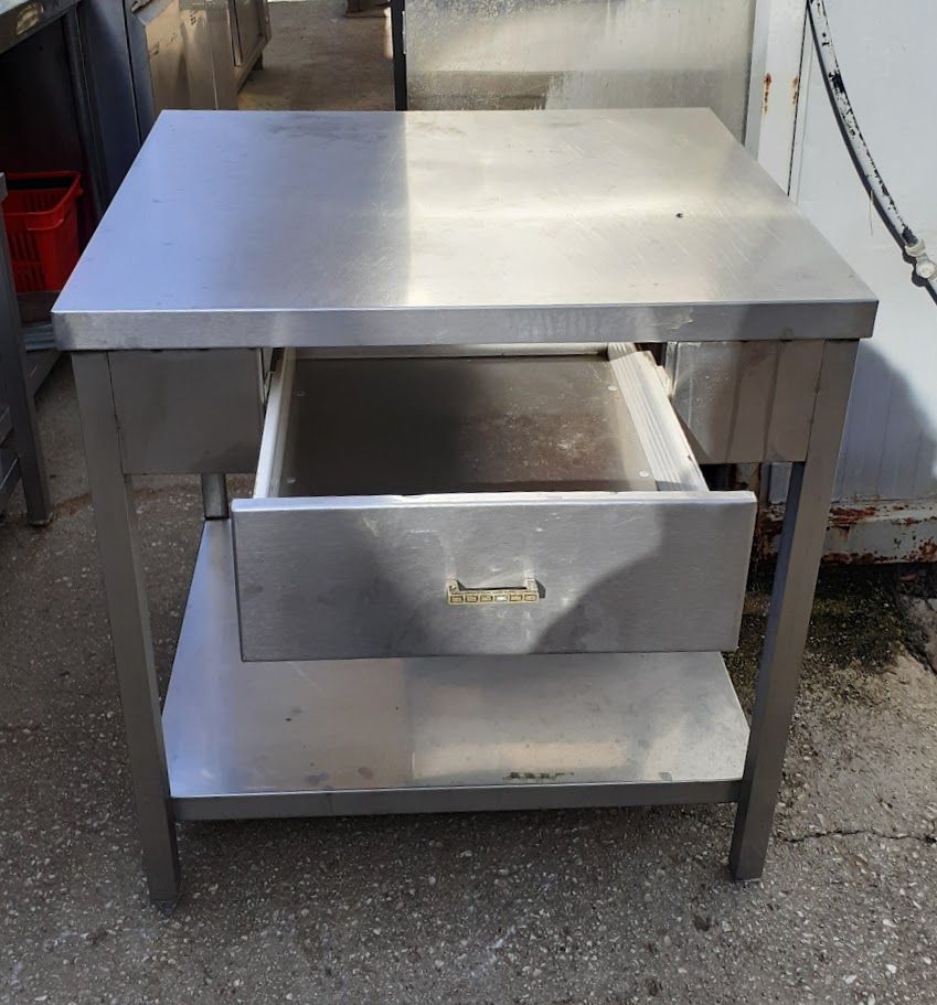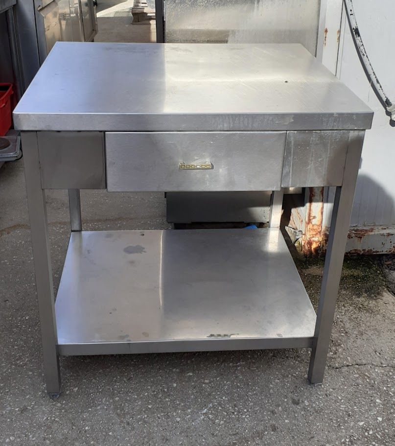 Μεταχειρισμένος επαγγελματικός πάγκος, ανοξείδωτης κατασκευής. Διαθέτει ένα συρτάρι και κάτω ράφι αποθήκευσης. Σε καλή κατάσταση. Διαστάσεις: 80x70x84εκ. Τιμή: 250€/τμχ.