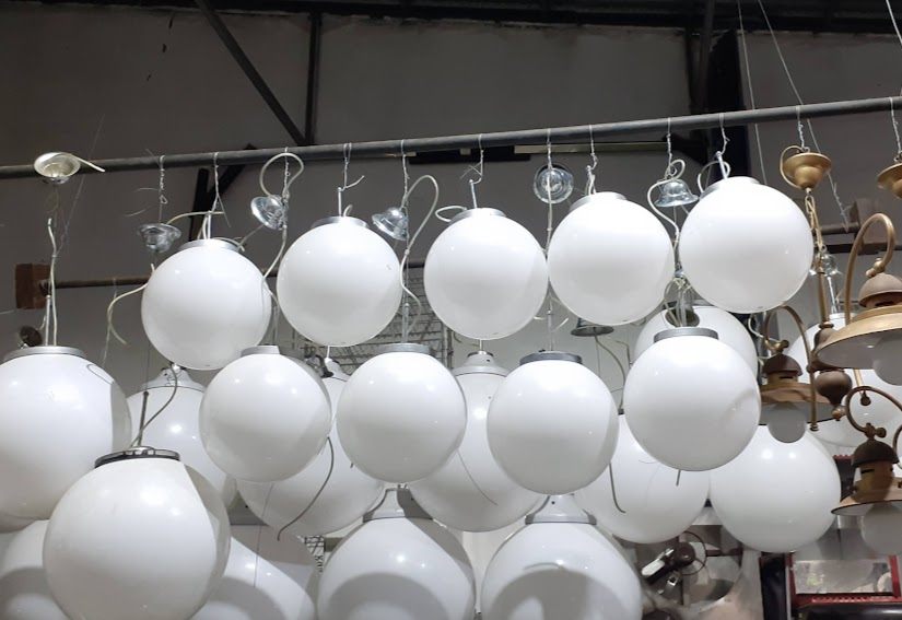 Μεταχειρισμένο φωτιστικό οροφής με μεταλλικό σκελετό και πλαστική μπάλα, σε λευκό χρώμα. Σε καλή κατάσταση. Διαστάσεις: Φ30 εκ.