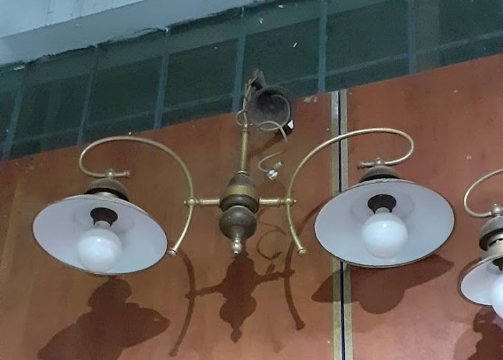 Μεταχειρισμένο κρεμαστό φωτιστικό με μεταλλικό σκελετό σε μπρονζέ χρώμα και δύο λάμπες. Σε καλή κατάσταση.