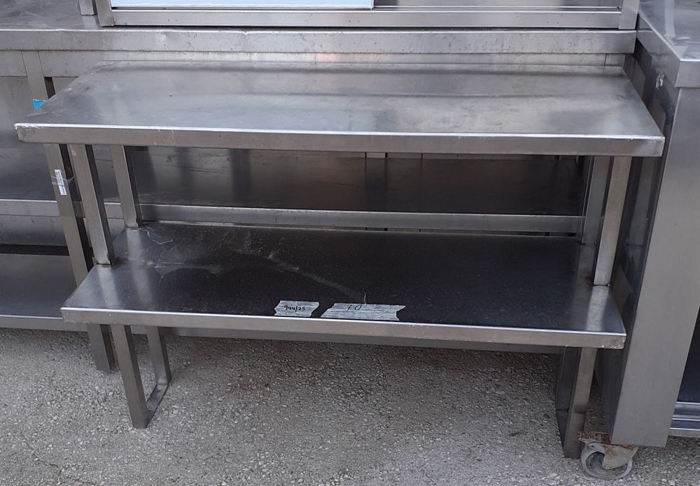 Μεταχειρισμένο ράφι πάγκου, ανοξείδωτο. Εξαιρετικά ανθεκτική κατασκευή. Κατάλληλο για κουζίνες εστιατορίων και χώρους επεξεργασίας τροφίμων. Σε καλή κατάσταση. Διαστάσεις: 100x35x79 εκ. Τιμή: 130€/τμχ.